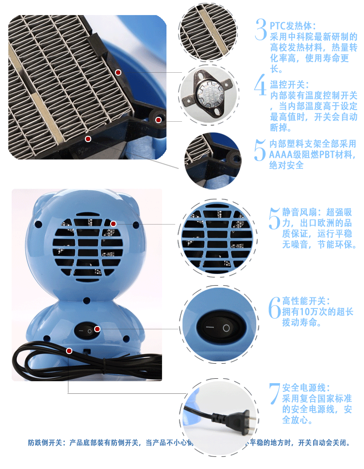 4, safe, use the "fall that the stop switch" the only mini-heaters, falls immediately shut down;