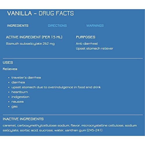 Studio : Kaopectate Publisher : Kaopectate Binding : Health and Beauty Product Description INDICATIONS: Kaopectate anti-diarrheal and upset stomach reliever stops diarrhea fast and has two key electrolytes to help you recover fast. INGREDIENTS: Active Ingredients: Per 15 mL: Bismuth Subsalicylate 262 mg.Inactive Ingredients: Caramel; Carboxymethylcellulose Sodium; Flavor; Microcrystalline Cellulose; Purified Water; Sodium Salicylate; Sorbic Acid; Sucrose; Titanium Dioxide; Xanthan Gum; Per 15 mL: Sodium 10 mg; Salicylates 130 mg. DIRECTIONS: Shake well immediatel 0