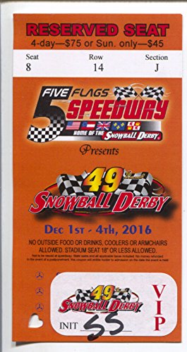 Five Flags Speedway -49th Snowball Derby Ticket Stub-VIP Reserved-12/4/2016-VG