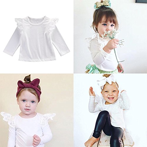 -. Feature : Material: Cotton + Lace / Adorable babys Casual Outfits,great for home and daily wear / Fashion cute solid color long sleeves lace crochet angel wings baby outfits / Premium fabric, feels very soft,comfortable,breathable and absorbent / Package Content:1* baby girl fashion tops,All sizes quoted are Asia sizes,Please kindly refer to your kids actual measurement before buying,Thanks.