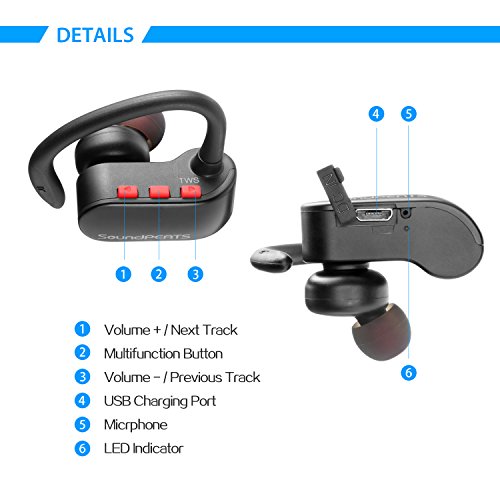 Title : SoundPEATS Wireless Earbuds, True Wireless Stereo Bluetooth 4.2 Headphones Cordless Earphones Sweatproof In-Ear Headset with Mic, Secure Fit for Sports