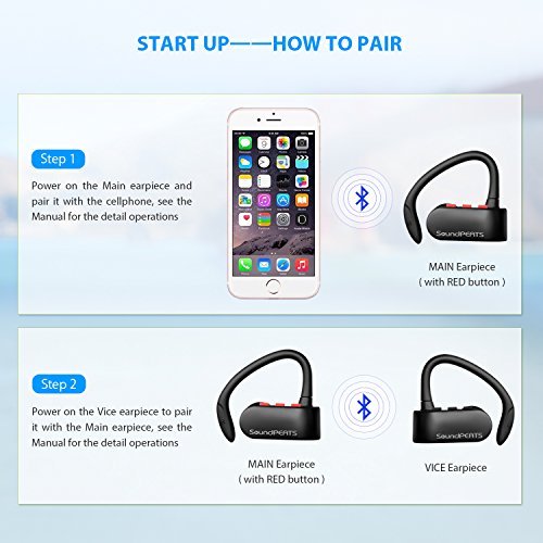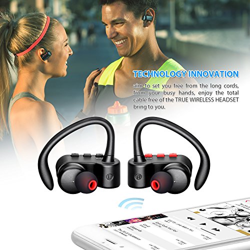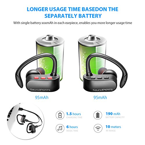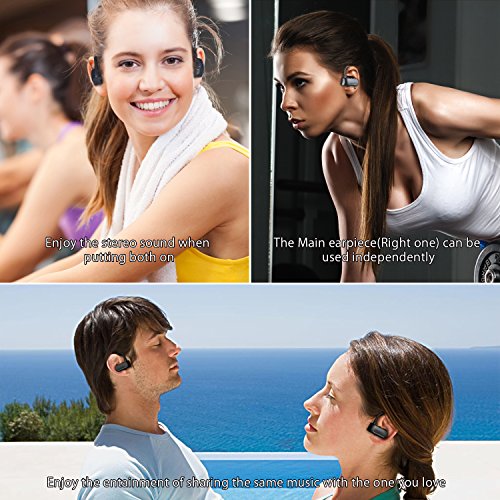 Feature : 【Truly Wireless】: Now you can enjoy the Real True Wireless headset,which will set you free from the long cable and busy hands. Cable-free also means no more worries about the cord bouncing, tapping, or rubbing on something. It also means no more noise when you move, and no more cords stuck to your neck when you sweat. / 【Stereo Mode/Mono Mode 】: The headset contains two pieces which can be used separately by you and someone you want to share it with, meaning you can share the same music/movies/TV(within reasonable distance), and can enjoy the stereo sound by using both earpieces. You can also use one of them, and enjoy the music world with just one earpiece. / 【Secure Fit and Sweatproof】: With the secure fit earhook, you don't need to worry about its falling out of your ear, and is perfect for working out because of the sweatproof feature. You can also enjoy the hands-free calling with the built-in microphone function. / 【Advanced Bluetooth 4.2 and Two Separately Battery】:Bluetooth 4.2 Technology lets you enjoy the Frequent High-Fidelity Super Clear Sound, and with the CSRA64210 Bluetooth Chipset, you can enjoy fast speed and stable connectivity. Two separate batteries makes the usage time longer; you can enjoy 6 hours working time on each earpiece. / 【One-Year Warranty】:We warrant this device 12 MONTHS from date of the original purchase for manufacturer defects. If the device fails due to a manufacturing defect, please contact seller directly to initiate return and warranty process.