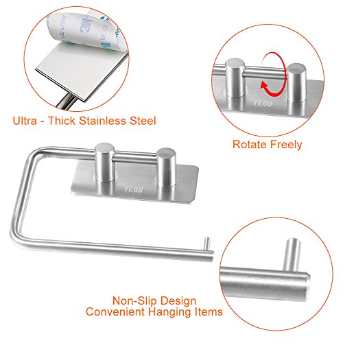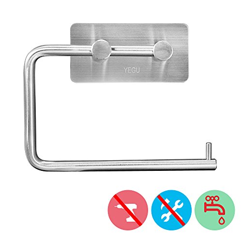 Toilet Paper Holder, Yegu 3M Self Adhesive Tissue Roll Hanger SUS304 Stainless Steel Contemporary Style Paper Towel Dispenser for Bathroom Kitchen Lavatory Hotel