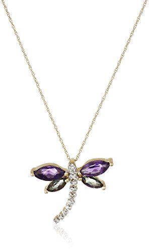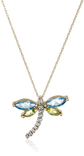 -. Title : Yellow Gold, Gemstone, and Diamond Dragonfly Pendant Necklace, 18"
