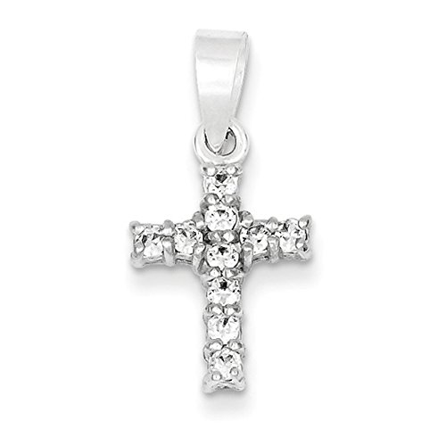 -. Binding : Jewelry -. Brand : The Black Bow -. Color : Silver -. Department : girls -. Feature : Polished sterling silver, open back design / Prong set with 10 cubic zirconia stones / Approximate size 11 x 23mm with the bail / Weight is Approximately 1.11 grams / Includes our custom gift box -. Label : The Black Bow -. Manufacturer : The Black Bow -. MPN : P12007 -. NumberOfItems : 1 -. PackageQuantity : 1 -. PartNumber : P12007 -. ProductGroup : Jewelry -. ProductTypeName : FASHIONNECKLACEBRACELETANKLET -. Publisher : The Black Bow -. Studio : The Black Bow -. Title : Medium Cubic Zirconia Cross Pendant in Sterling Silver