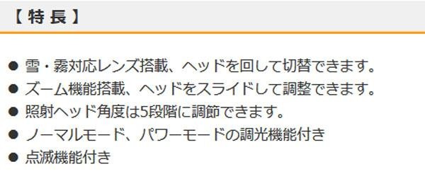 雪・霧対応レンズはヘッドを回して切替、ズーム機能はヘッドをスライドして調整できます。