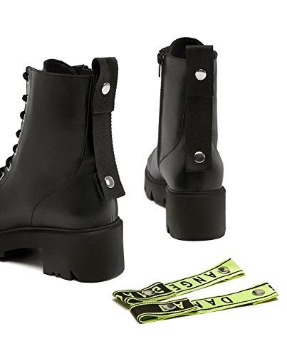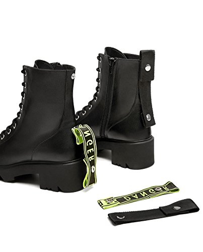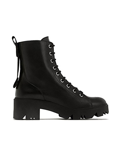 Product Description Black leather flat ankle boots. Two interchangeable pull tabs, one of which has a slogan. Lace-up front. Track soles. Side zip closure. Sole height 5,5 cm. / 2.1 inches Official brand size equivalence for Women Shoes. Size 35 | USA 5 ? ?|?UK 2 Size 36 | USA 6 ? ?|?UK 3? Size 37 | USA 6.5 |?UK 4? Size 38 | USA 7.5 |?UK 5? Size 39 | USA 8 ? ?|?UK 6 Size 40 | USA 9 ? ?|?UK 7? Size 41 | USA 10 ?|?UK 8? Size 42 | USA 11 ?|?UK 9? Size 43 | USA 12 ?|?UK 10 0