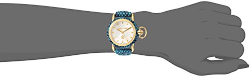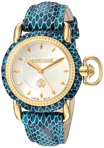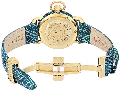 Roberto Cavalli by Franck Muller Women's 'MOVING CROWN DETAIL' Quartz Stainless Steel and Leather Casual Watch, Color:Blue (Model: RV1L017L0076)