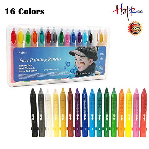 Happlee 16 Colors Face Paint Kit, Crayon Face and Body Pencils for Kids & Adult Makeup, Painting