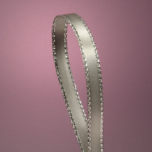 - 1/4" X 50yd Silver Satin Ribbon with Silver Border