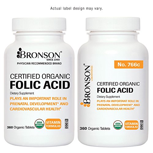 -. Binding : Health and Beauty -. Brand : Bronson Vitamins -. Feature : HIGHEST QUALITY, TOP POTENCY: We use only the best ingredients available. Incredibly pure, USDA Certified. Made in USA at FDA cGMP Registered Facility. / USDA Certified Organic: Only products with USDA Certified Organic logo are truly organic! / 1 SMALL PILL A DAY: Folate supplementation is even more important if you are suffering from morning sickness or hyperemesis gravidarum. / HIGHLY REGARDED AND RECOGNIZED: Our Products Have Been Consistently Recommended By The Foremost Nutritional Scientists Like Nobel Prize Winner, Dr. Linus Pauling / 100% CUSTOMER SATISFACTION, MONEY-BACK GUARANTEE -. IsAdultProduct : 0 -. Label : Bronson Laboratories -. Manufacturer : Bronson Laboratories -. MPN : 766C -. PackageQuantity : 1 -. PartNumber : 766C -. ProductGroup : Health and Beauty -. ProductTypeName : HEALTH_PERSONAL_CARE -. Publisher : Bronson Laboratories -. Studio : Bronson Laboratories -. Title : USDA Certified Vegetarian Organic Folic Acid Ultimate Prenatal Vitamin, 360 Organic Folic Acid Tablets (1 Year Supply), Made in USA