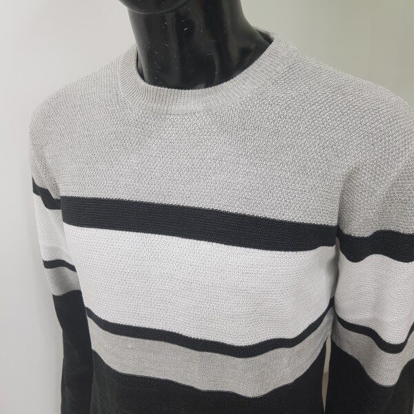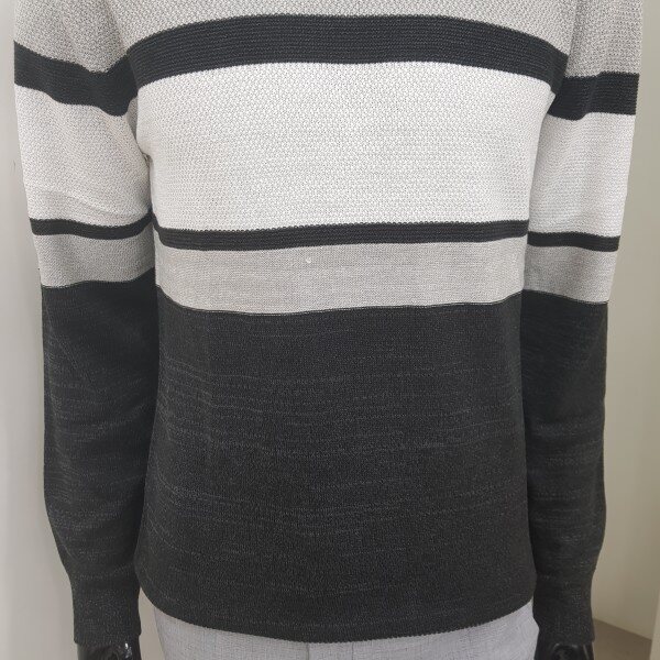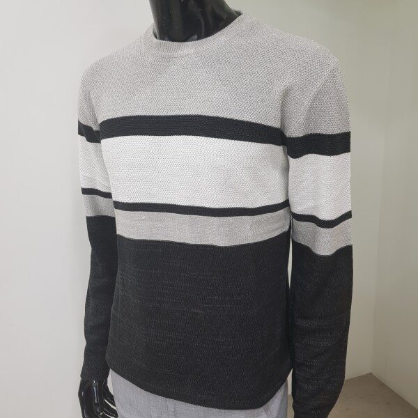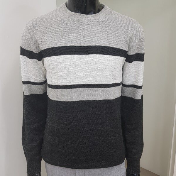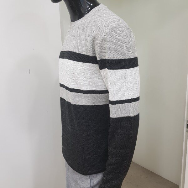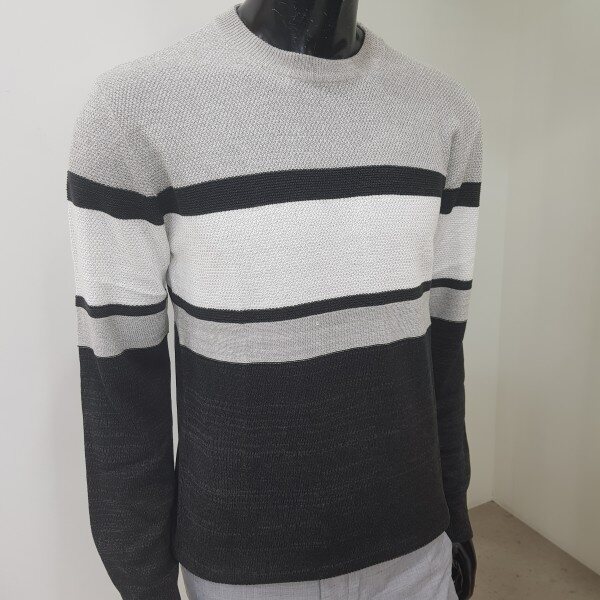 2018년 겨울 신상 남성 허니컴 블럭 라운드넥 스웨터 입니다. 양두조직과 허니컴조직의 서로 다른 조직감의 심플한 절개 포인트를 주어 깔끔한 코디가 가능한 라운드넥 스웨터입니다.