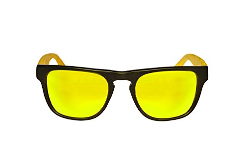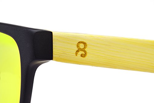 Product Description We believe there are three constants that make for the best polarized sunglasses: affordability, mirror lenses, and bamboo. Bamboo sunglasses are not only a durable material, but they offer an incredible level of comfort. Polarized mirror lenses allow you to see on the water, and on roads with more clarity. The Rush polarized sunglasses are a step into a new fashion sense. Featuring beautiful yellow polarized lenses (mirrored), black acetate front with keyhole bridge, and bamboo arms. The bamboo and acetate are highly durable materials attached with a small flexing metal hinge. Includes 8wake soft case. At 8wake, we wanted to tackle the problem of stale designs, bad lenses, and overpricing. What did we come up with? Polarized mirrored lenses, a unique vector design, bamboo arms and acetate front: all wielded an exceptional pair of sunglasses. Even with implementing these core attributes we were still able to keep the cost low. What is better knowing that you got a hold of cheap polarized sunglasses, without sacrificing any of the high quality materials and unique designs that go into 8wake? There was never a doubt along this journey that 8wake's would be inspiring. So we are inspiring you all to get out there and explore. Go polarized. Go mirrored. Go bamboo. Go 8wake. 0