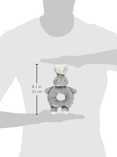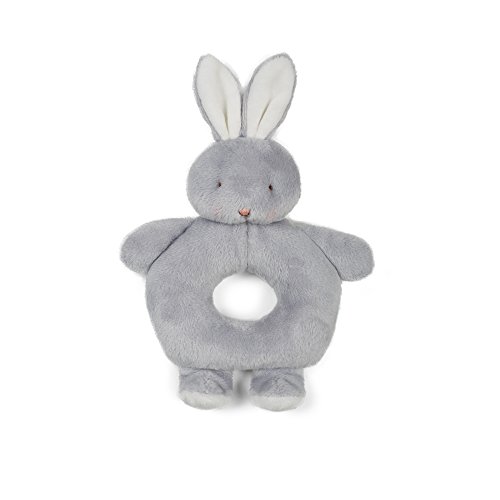 Soft glacier gray velour rattle has a dainty embroidered face. Size: 6". Surface wash/spot clean.