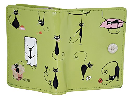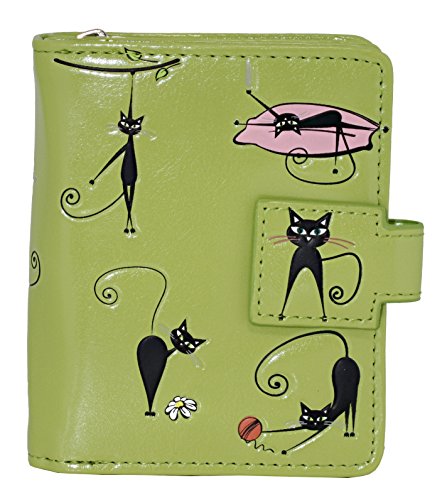 Binding : Apparel Product Description These cats will drive you crazy! Holds your cash and cards securely. Features 4 credit card slots, 1 ID card slot, 1 large money pocket, an exterior magnetic snap closure and a large zippered back pocket with divider. Made of faux leather and measures 4 x 4.5 x 1 in. 0