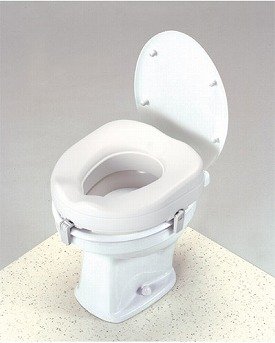 Supplemental toilet seat makes it easier to sit upright by raising the seat.