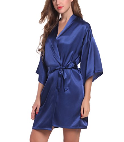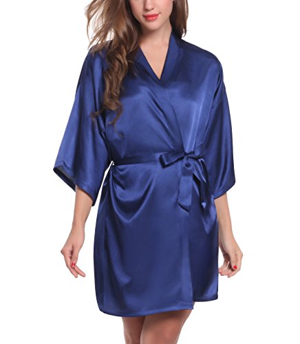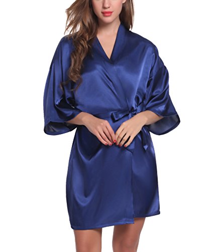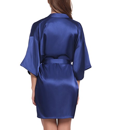 ADORNEVE Women's Kimono Robe Satin Lounge Bridesmaids Short Style Dark Blue X-Large