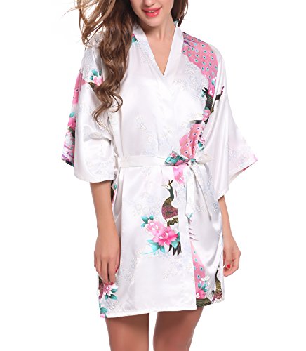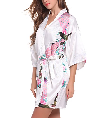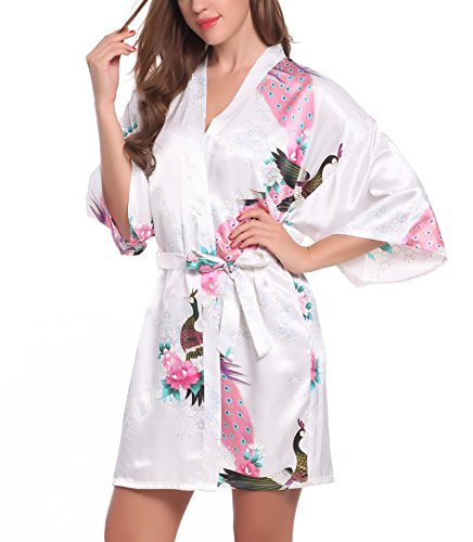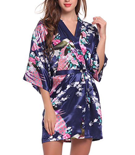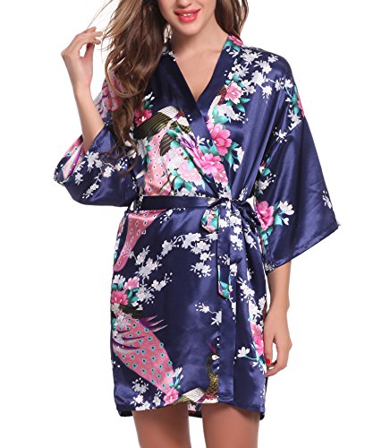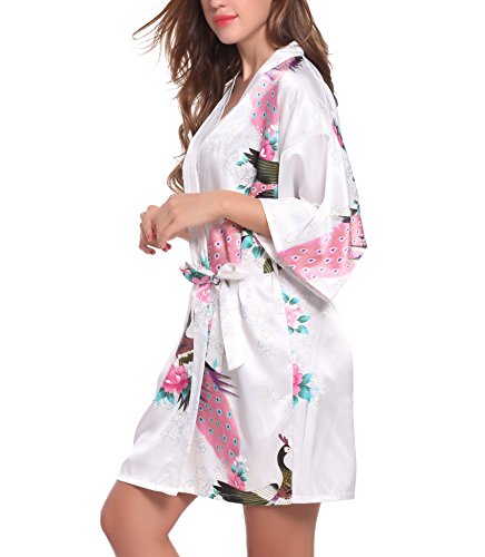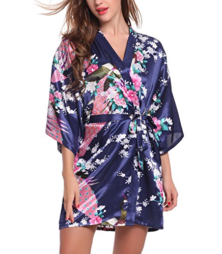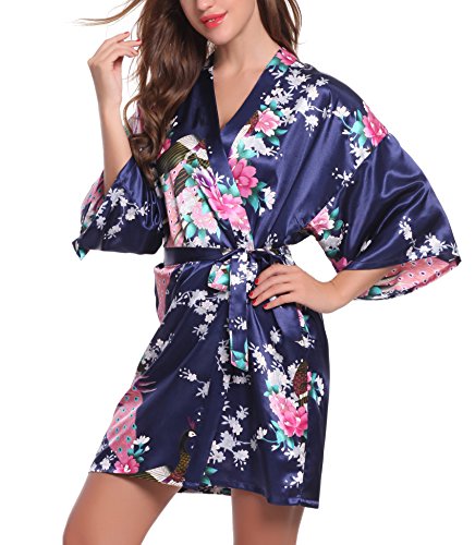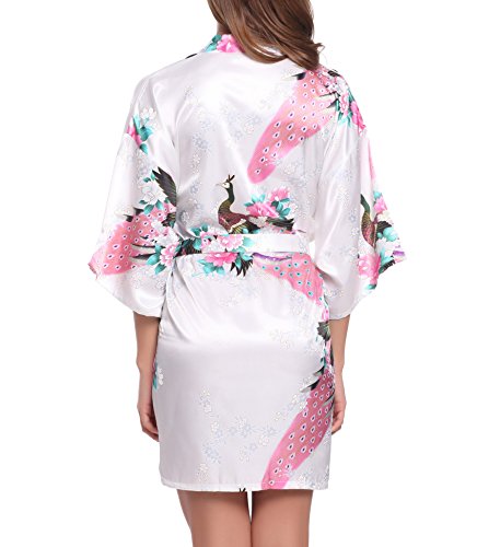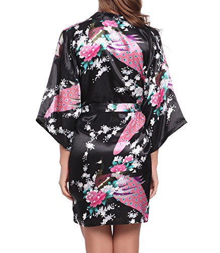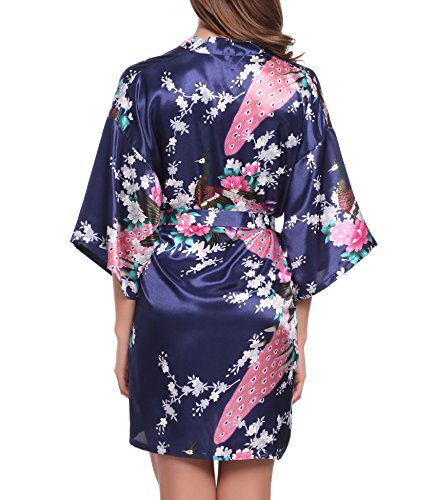 ADORNEVE Women's Short Peacock Blossoms Kimono Robe Bathrobe Nightwear