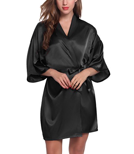 ADORNEVE Women's V Neck Short Style Satin Kimono Robes sleepwear