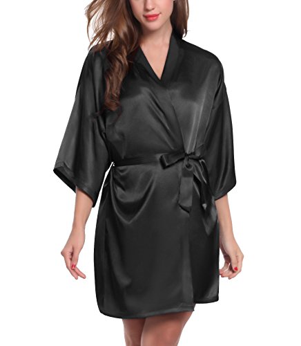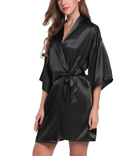 ADORNEVE Women's Kimono Robe Knee Bridal Lingerie Sleepwear Short Satin Robe