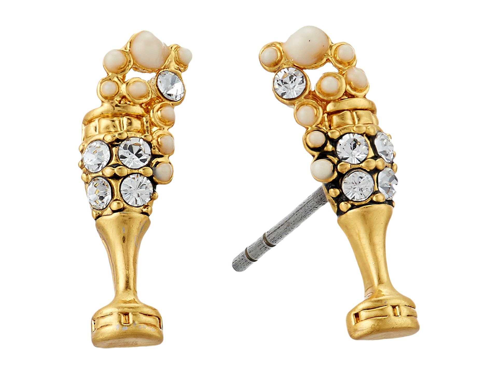 | Product Information SKU: #8915599Lose yourself in the playful bubbles while looking your best accessorized with the Marc Jacobs? Champagne Flute Studs Earrings.Gold-tone metal earrings with playful champagne glass studs encrusted with sparkling stones and gorgeous pearl studs throughout.Post backs for closure.Imported.This item may ship with an attached security tag. Merchandise returned without the original security tag attached or a damaged tag may not qualify for a refund.Measurements: Width: 1?5 in Height: 1?2 in Weight: 0.1 oz |