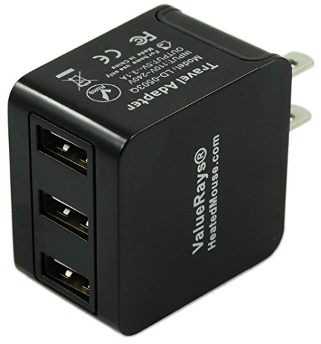 ValueRays Three 3 Port USB Adapter, Three Port USB Wall Outlet, 3 Port USB Power Strip Adapter, Cell Phone Charger, Tablet Charger, iPhone, iPad, iPod, 5V 3.1A Heavy Duty USB Adapter