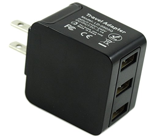 Three Port USB Adapter. 5W USB Cable Power Adapter. Black. Ultra-compact design. Fast, efficient USB connection. Fixed prongs (see images). Portable USB power. Convenient power source. USB travel device.