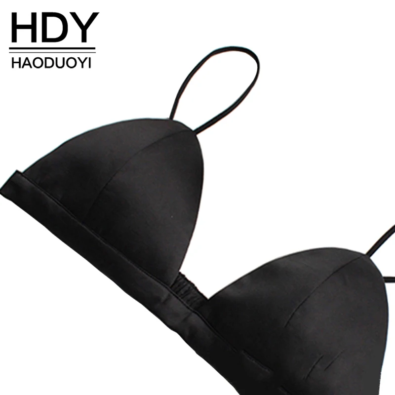 | HDY Haoduoyi Solid Black Women Bra Summer Hot Sexy Deep V Neck Bralette Push Up Soft Bralette Casual Fitted Bralette |