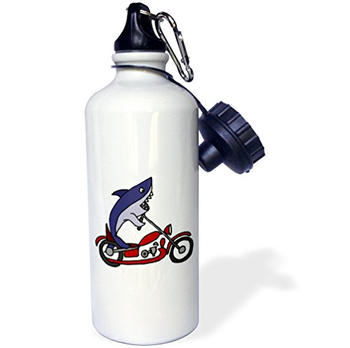 -. Title : 3dRose All Smiles Art Sports and Hobbies - Funny Shark Riding Motorcycle - 21 oz Sports Water Bottle (wb_240044_1)