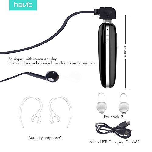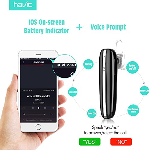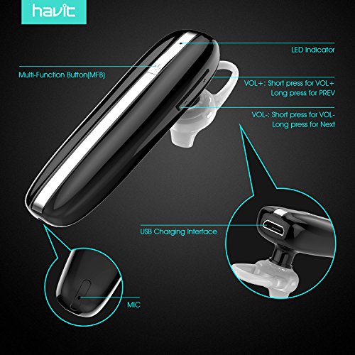 -. Title : HAVIT Bluetooth Headset V4.1 Wireless Headphone with Mic, Hands-free, 230mAh Large Battery Capacity, 13 Hours Music Play/Talk Time, for iPhone and Smartphones (I11)