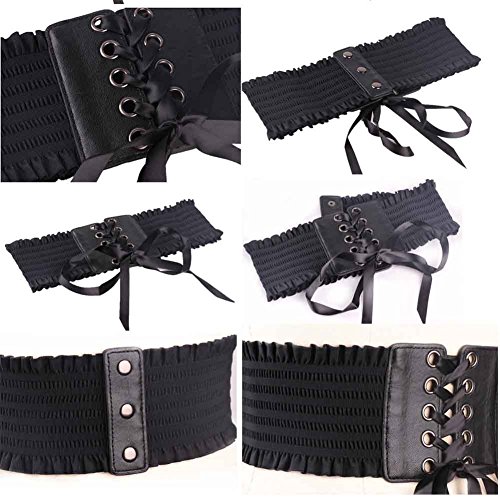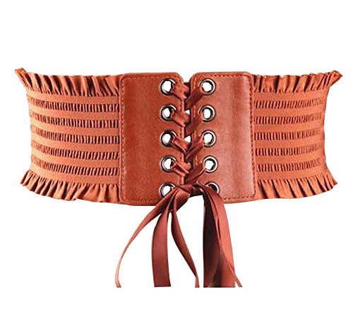 (Black Temptation)/Accessories/Belts Buckles/DIRECT FROM USA/Ladies Fashion Lace Waist Belt Elastic Belt Wide Girdle Dress Belt [Camel]