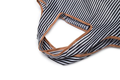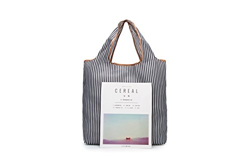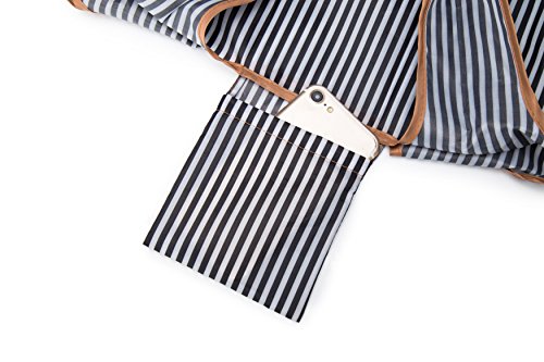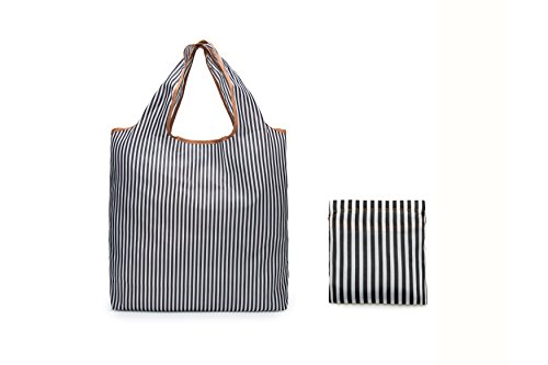 Huishihousu Reusable Grocery Bags,Grocery Tote Foldable into Attached Pouch,Washable, Durable and Lightweight (Black and White Stripes)