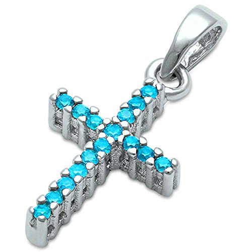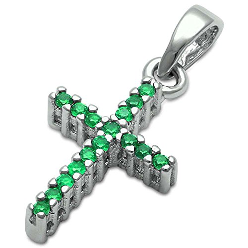 -. Title : Simulated Gemstone Cubic Zirconia Cross .925 Sterling Silver Pendant Charm