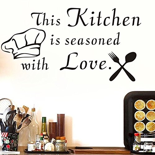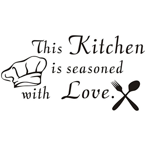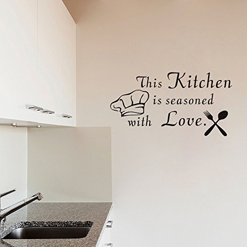 DCTOP(TM) This Kitchen Is Seasoned With Love Cutlery And Chef Hat Wall Sticker Kitchen Removable Home Decor Wall Vinyl Decals Black 16.5"x31.8"