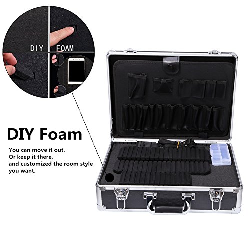 Aluminum Tool Box Professional Hard Briefcase Lockable Metal Tools Organizer with Pre-Scored Foam Insert