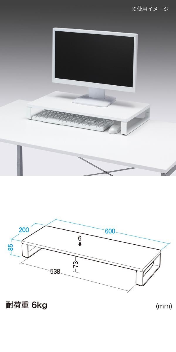 fk094igrjs机上の空間を有効活用できる机上液晶モニタースタンド幅530mmまでのキーボードの収納が可能です サイズ 個装サイズ:5×83×23cm 重量 2.3kg 個装重量:2800g 素材・材質 天板:木製(パーティクルボード)+メラミン化粧板 フレーム:スチール(エポキシ樹脂粉体塗装) 仕様 組立式 製造地 台湾 液晶モニターの下の空間を有効活用 机上の空間を有効活用できる机上液晶モニタースタンド幅530mmまでのキーボードの収納が可能です