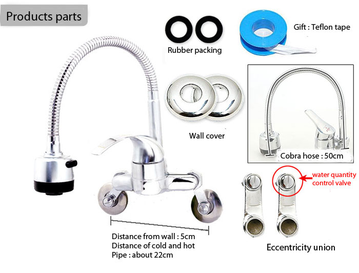 The distance between cold and hot pipes center is 150mm ,the adjustable size of it is 50-220mm