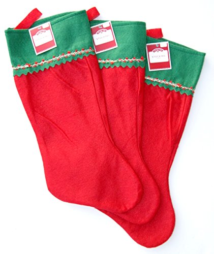 Holiday Time Red and Green Felt Christmas Stocking - Set of 3