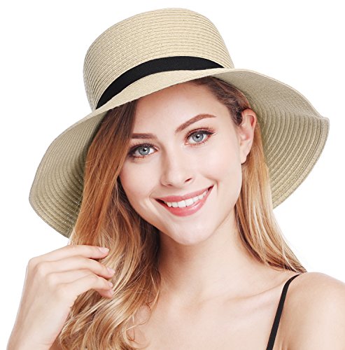 Bienvenu Womens Straw Sun Hat Wide Brim Floppy Hat Summer Beach Cap