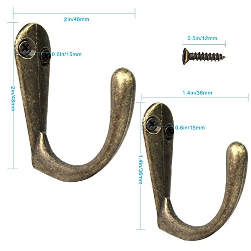 - EASY TO USE: These hooks are very easy to install. Each hook is reinforced with 2 screws, they can work with each other well to keep your items.They are in bronze color with vintage style, which can show your unique taste to your friends or neighbours. With smooth edge, these hooks will not damage to the fabrics or any item you hang on.