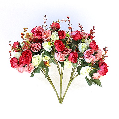 pack of 3 bouquets, 1 Bunch 21 Flowers Silk European Rose