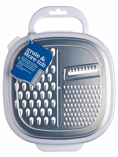 - This multi purpose stainless steel grater and storage tub features a grater with fine, coarse and slicing blades that grate directly into a handy airtight storage.