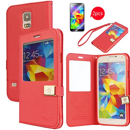 Galaxy S5 Case,[2PCS HD Screen Protectors]By Ailun,Samsung Galaxy i9600 Case,Window-View Case,PU Leather Case,Flip Cover Case[Black]