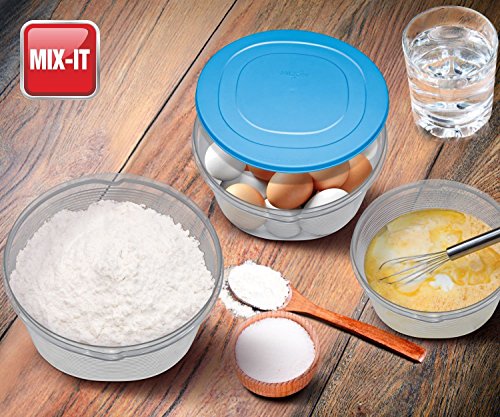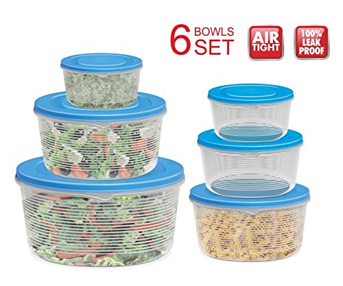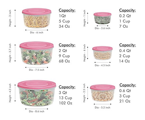 - VARIETY OF SIZES; LARGE & SMALL BOWLS: This set consists of 6 containers, all of different size to meet every need. Smaller bowls are great for salad dressings, single servings of food, and larger ones work great for salads, soups, cake batters, or cookie dough. Bowl sizes: 3.15 qt./101 oz., 2.10 qt./67.6 oz., 1 qt./33.8 oz., 0.6 qt/20.2 oz., 0.4 qt./13.5 oz., 0.2 qt./6.7 oz. All bowls come with attractive blue or pink lids.