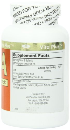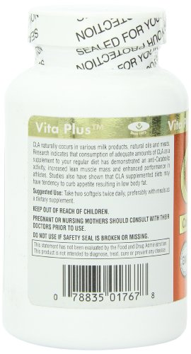 -. Binding : Health and Beauty -. Brand : Vita Plus -. EAN : 0078835017678 -. Feature : May promote healthy weight loss by reducing body fat when combined with a healthy diet and regular exercise plan / Promotes growth of healthy muscles by allowing nutrients into healthy muscle cells / Reduce Body Fat -. IsAdultProduct : 0 -. IsAutographed : 0 -. IsMemorabilia : 0 -. Label : Vita Plus -. Manufacturer : Vita Plus -. MPN : 078835017678 -. NumberOfItems : 1 -. PackageQuantity : 1 -. PartNumber : 078835017678 -. ProductGroup : Health and Beauty -. ProductTypeName : HEALTH_PERSONAL_CARE -. PublicationDate : 2013-07-12 -. Publisher : Vita Plus -. ReleaseDate : 2015-06-22 -. Studio : Vita Plus -. Title : Vita Plus Cla Softgels, 1000 mg, 90 Count -. UPC : 078835017678