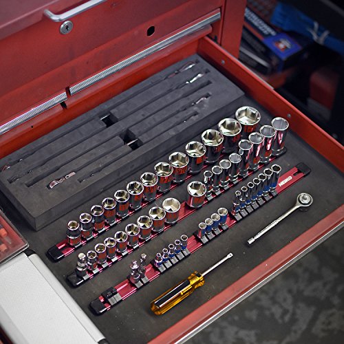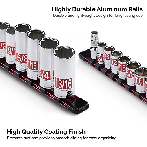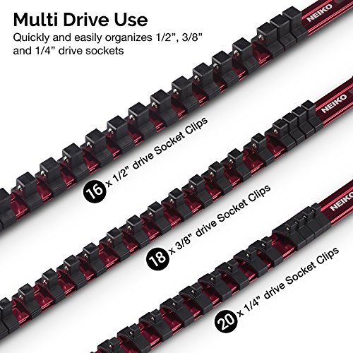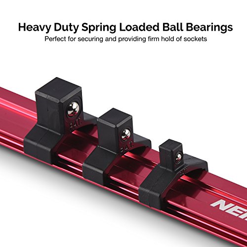 Neiko 02454A Heavy Duty Aluminum Socket Holder, 3 Piece Organizer Set | 1/2”, 1/4”, 3/8” Drive
