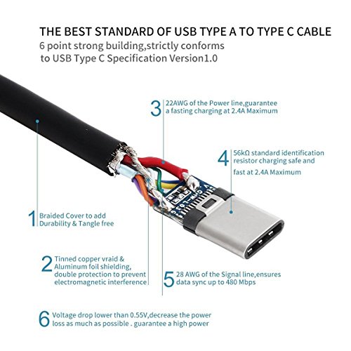 -. Feature : WELL BUILD CONSTRUCTION: Lengthened aluminum head with no glue inset to the rubber plug, no easy crack and tear off, thermal performance is good. / BROAD COMPATIBILITY: Type C cable works well with Google Nexus 5X / Nexus 6P / Pixel XL, Lumia 950 / 950XL, LG G5/SE/G6/V20, HTC 10, Huawei P9/Plus, Motorola Moto Z Force/Play, ZTE Zmax Pro, and other USB 2.0 Type-C devices. / FAST SYNC & CHARGE: Charges phones and tablets with USB-C ports at high-speed. Offers transfer speeds of 480 Mb/s, or 100 songs every 5 seconds. / LASTS 5X LONGER: Double-braided nylon exterior, toughened aramid fiber core and laser-welded connectors equip PowerLine+ with superior toughness from end-to-end. / LIFETIME WARRANTY: Myckuu Unconditional Lifetime Warranty, ensures the long-time enjoyment of your purchase. Please contact us with any question or concern - we are here to help.