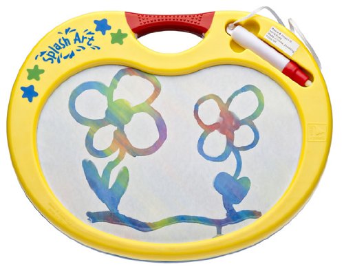 12 months & up. Draw with ordinary water with our unique art drawing board. Includes refillable drawing stylus for artists to create pictures. Two sides to draw on, children can draw on one side while the other side "magically" erases (dries). 13" wide. One side blue and the other yellow.Feature