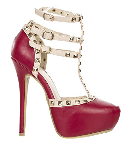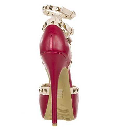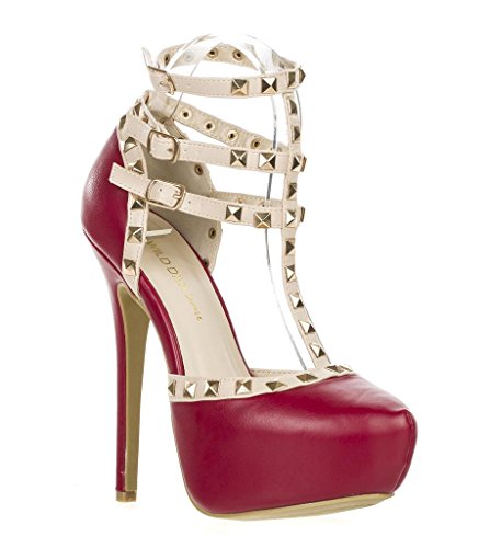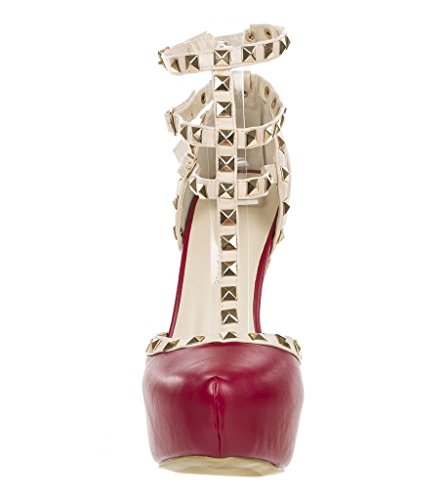 (Wild Diva Lounge)/Women's/Pumps/DIRECT FROM USA/Women's Pyramid Studded T Strap Platform High Heel Pump Jacklyn-95