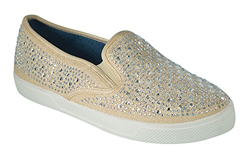 Cherry-10 Women Rhinestone Studded Flatform Slip On Flat Sneaker Shoes